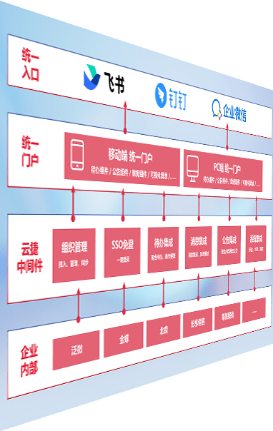 对协作平台提供支持服务,,,支持企业应用与协作平台对接,,,,包含组织同步、、、消息集成、、、、待办集成等。。。。支持目前主流的协作平台:钉钉、、、企微和飞书。。